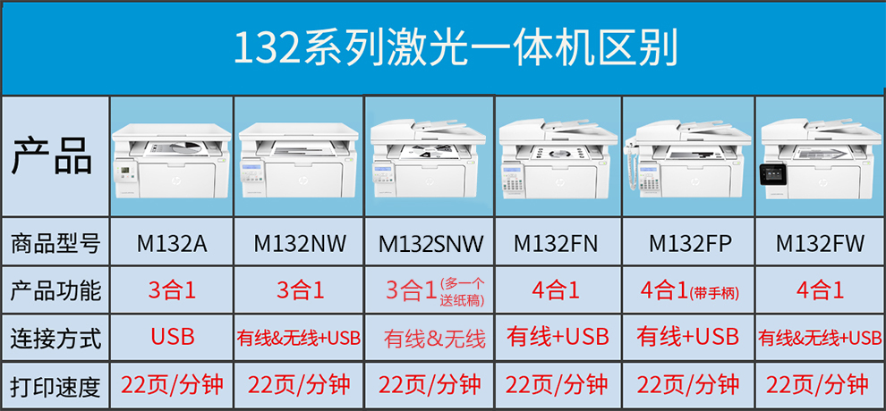 • 型号:LaserJet Pro MFP M132fn