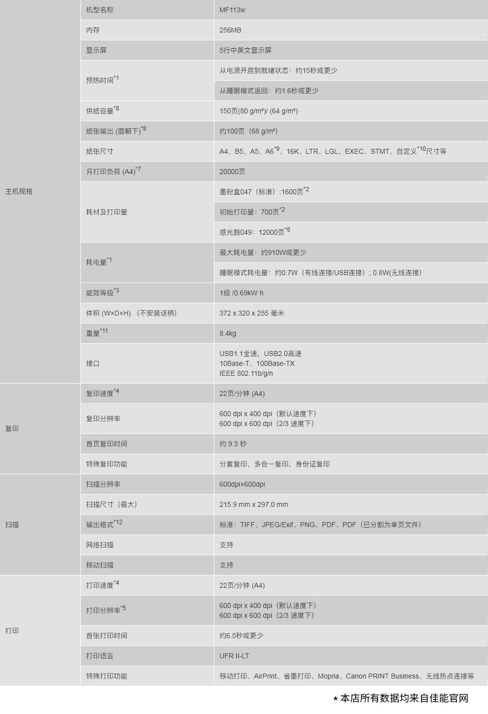 • 商品名称:佳能(Canon)imageCLASS MF113W 黑白激光多功能一体机 RD.27