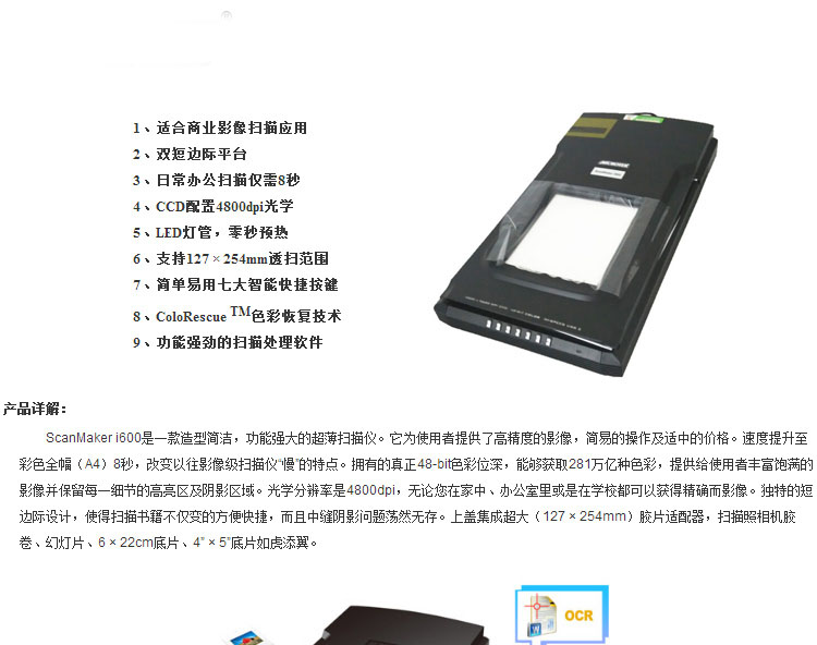 • 商品名称:中晶(microtek)i600 图文底片高清扫描仪