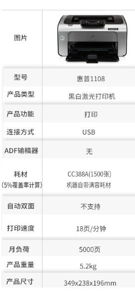 • 商品名称:HP1108 A4黑白激光打印机