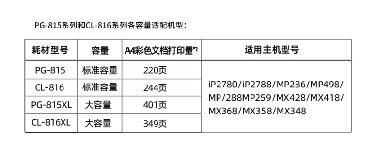 • 适用机型:IP2780、iP2780/iP2788、MP259/MP288/MP498、MX348/MX358/MX368/MX418/MX428