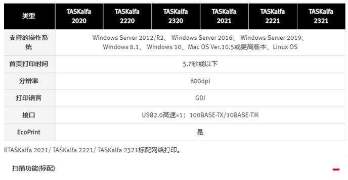 • 型号:TASKalfa 2020