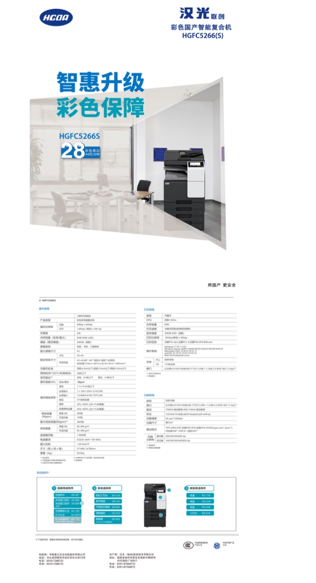 • 商品名称:汉光彩色智能复印机HGFC5266S