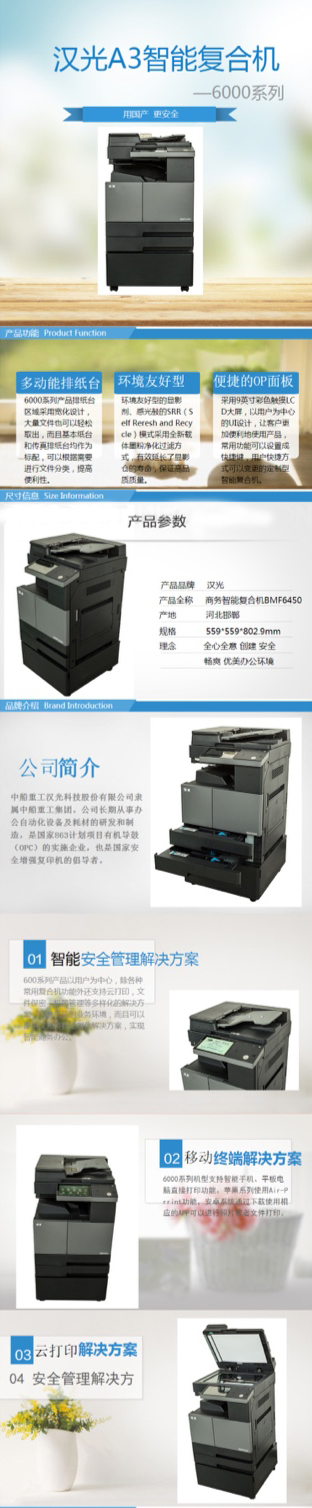 • 商品名称:国产品牌 汉光 BMF6450 复印机 黑白A3多功能复合机 国产 打印复印扫描一体机(标配+选配纸库)