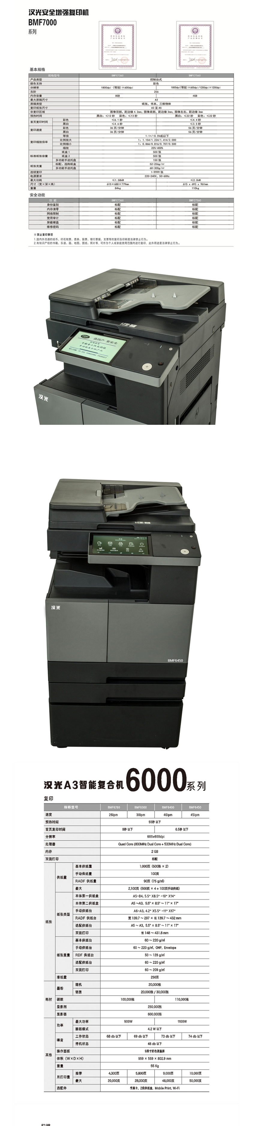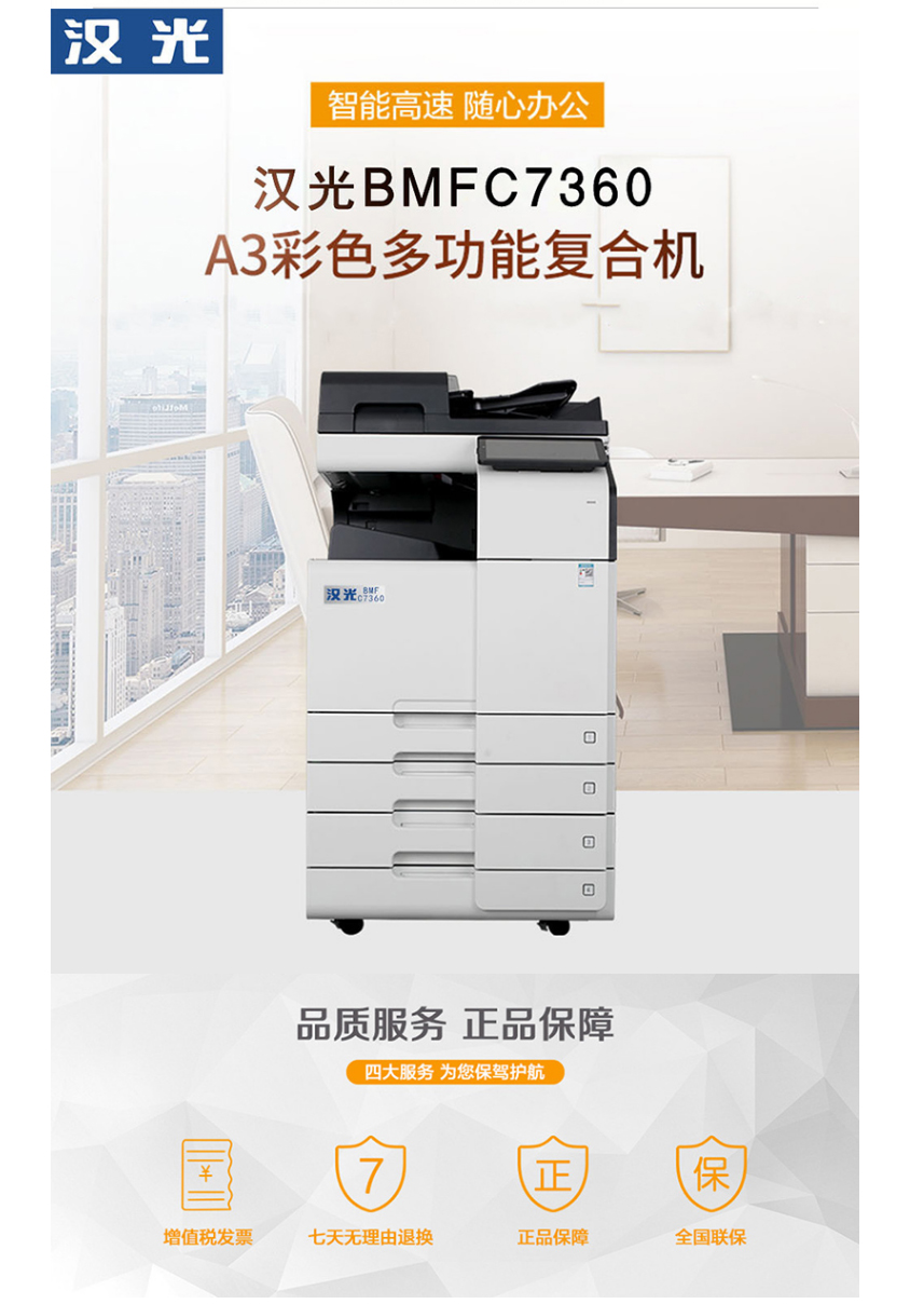 • 商品名称:汉光联创 BMFC7360安全增强复印机 彩色A3复印机 身份识别/内存清零/网络限制/使用审计/屏蔽硬盘
