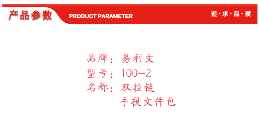 • 商品名称:易利文 YILIWEN 100-2 文件袋资料夹 红色(手提 30*39cm 内加里子布).wy
